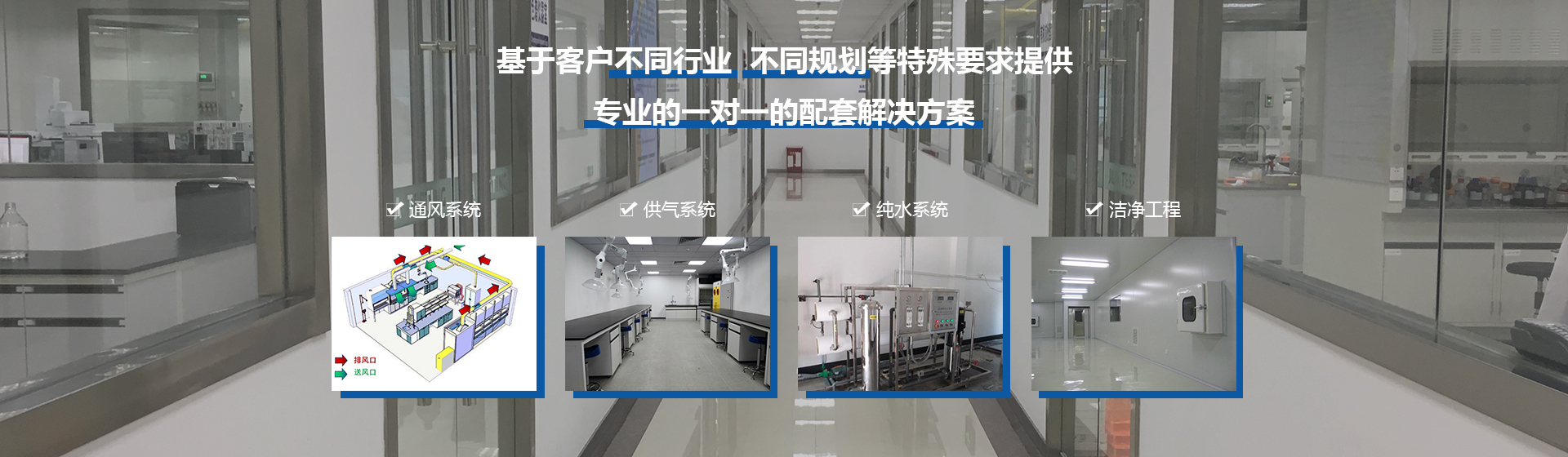 我們專業(yè)為您提供實驗室建設(shè)方案、實驗室設(shè)計規(guī)劃、實驗室裝修工程、實驗室配電系統(tǒng)、實驗室給排水系統(tǒng)、實驗室集中供氣系統(tǒng)、實驗室純水系統(tǒng)、實驗室凈化工程、實驗室污水處理工程、實驗室智能排風(fēng)系統(tǒng)、實驗室家具配套一站式服務(wù)。基于客戶不同行業(yè),不同規(guī)劃等特殊要求提供專業(yè)的一對一的配套解決方案。